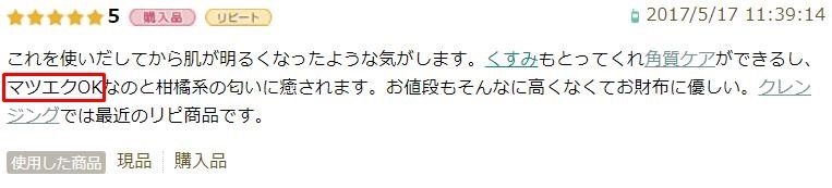 くすみもとってくれ角質ケアができるし、マツエクOKなのと柑橘系の匂いに癒されます。