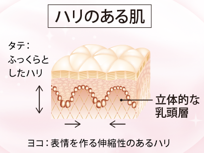 角質層のラメラ構造が整うとお肌が引き締まるようになり、内側からハリ・弾力が出ます。
