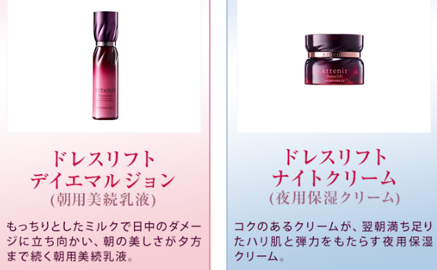 ちなみにアテニアのドレスリフトは朝用と夜用で乳液とクリームを使い分けますよ~!