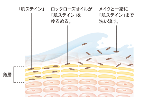 アテニアは日本で初めて「肌ステイン」をゆるめて切り離す成分「ロックローズオイル」を配合しました!